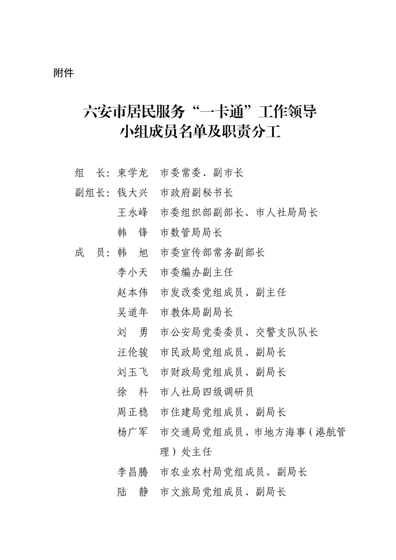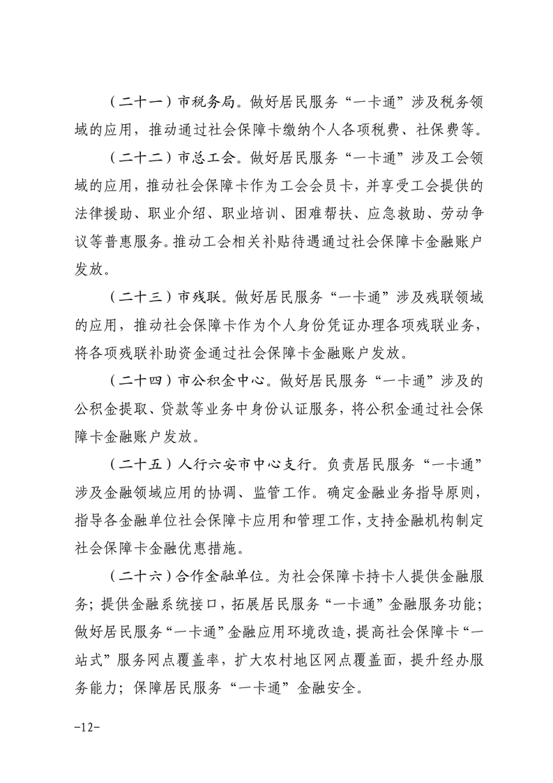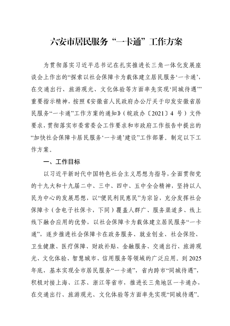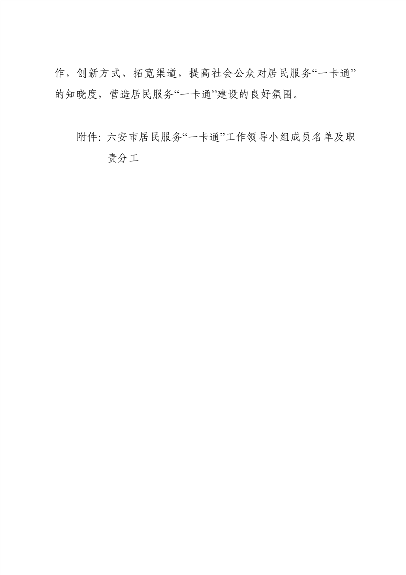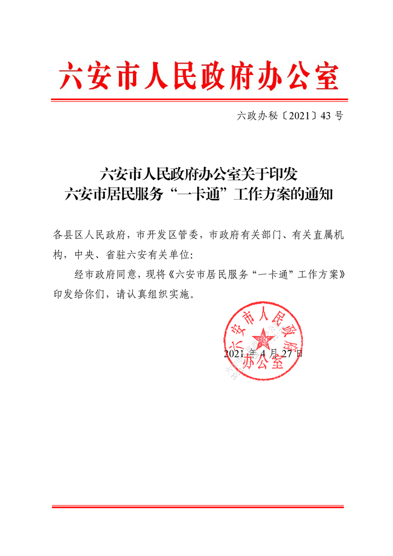 六安市人民政府办公室关于印发六安市居民服务“一卡通”工作方案的通知