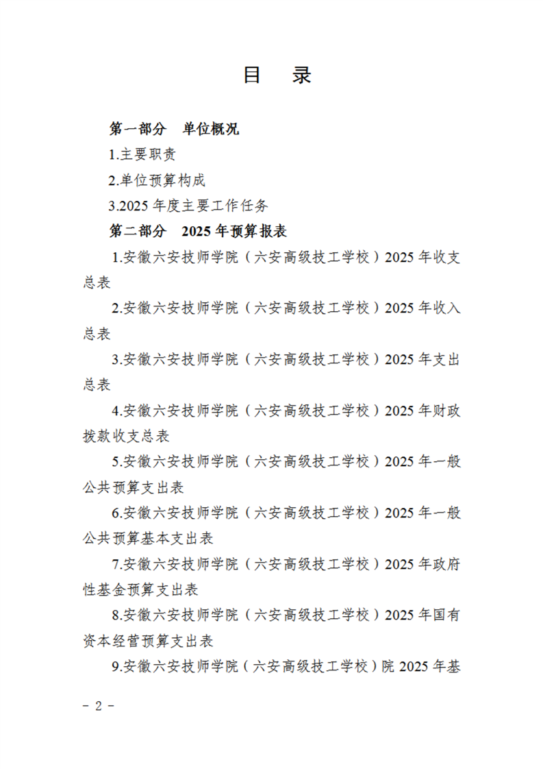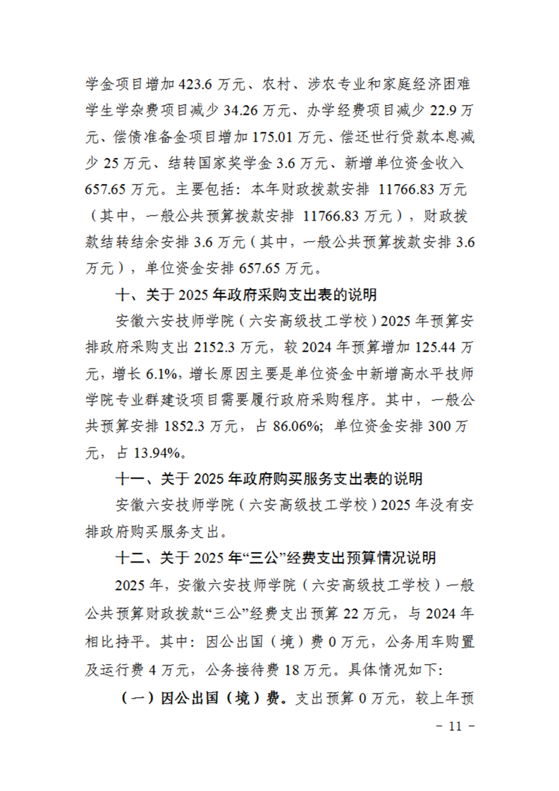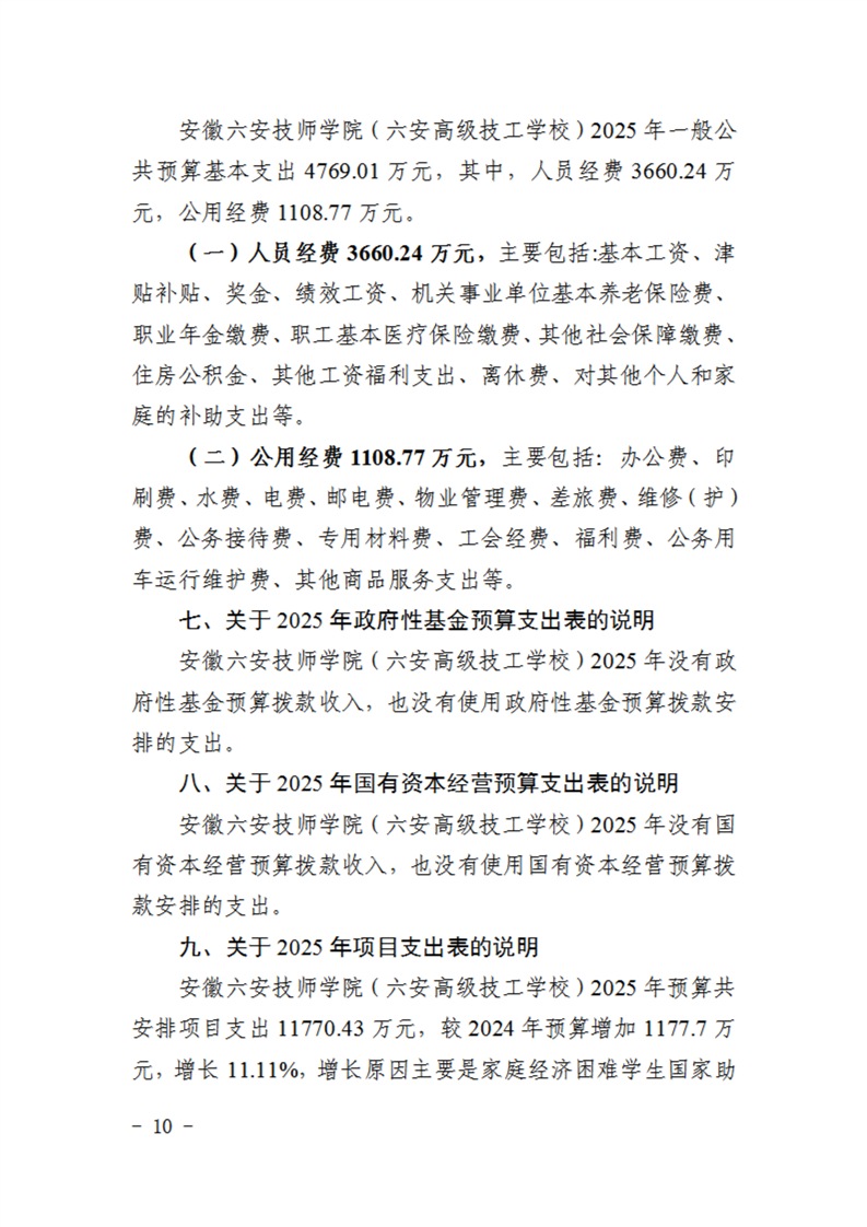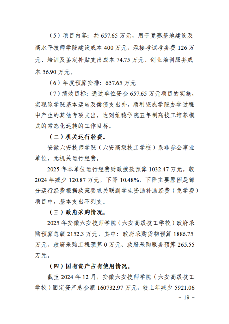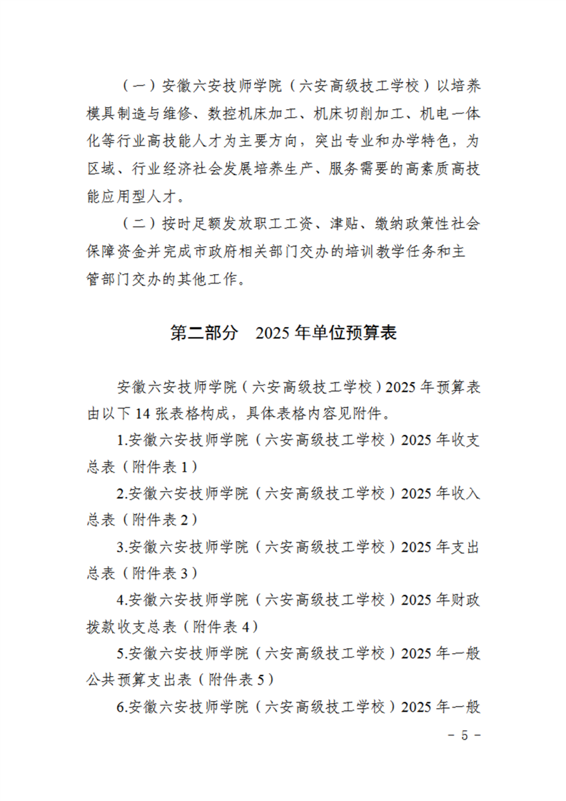 安徽六安技师学院(六安高级技工学校)2025年单位预算公开