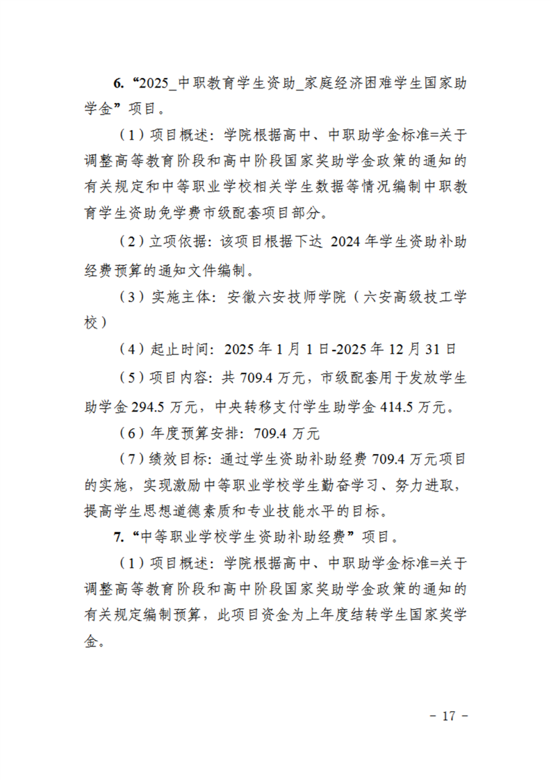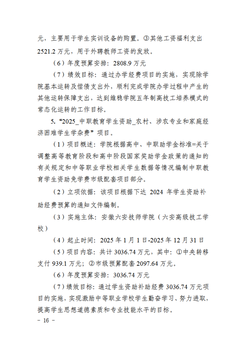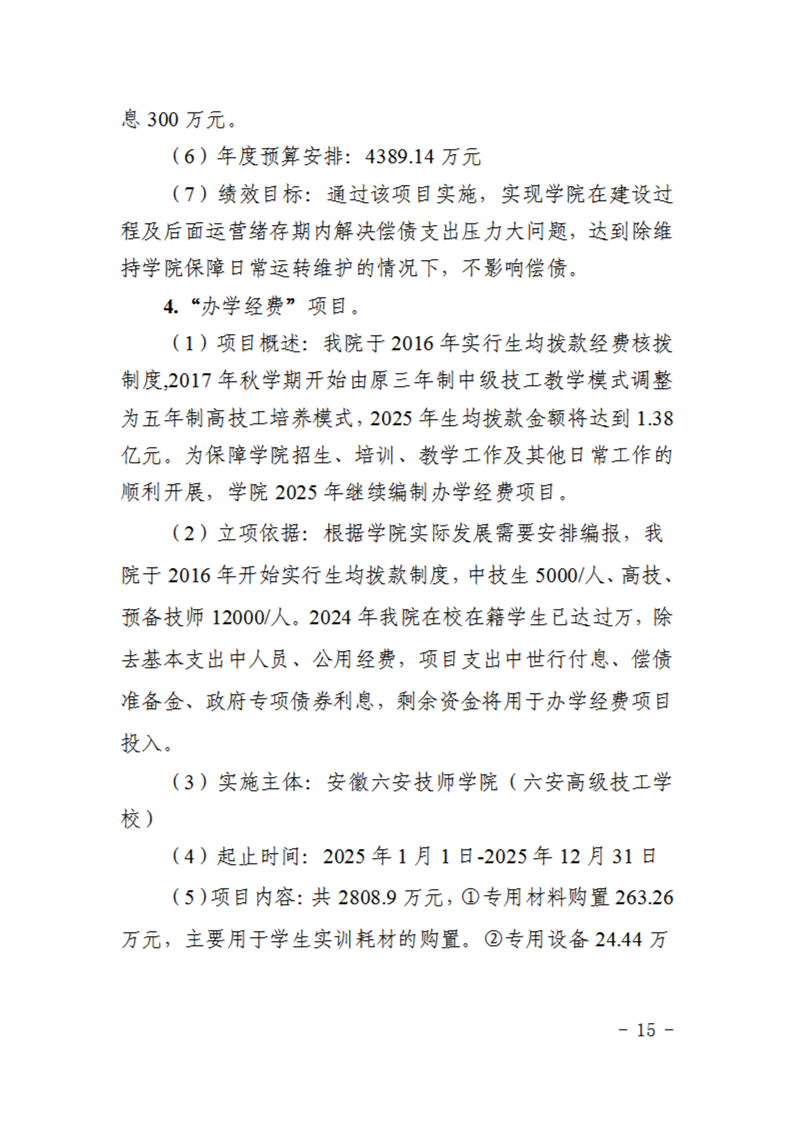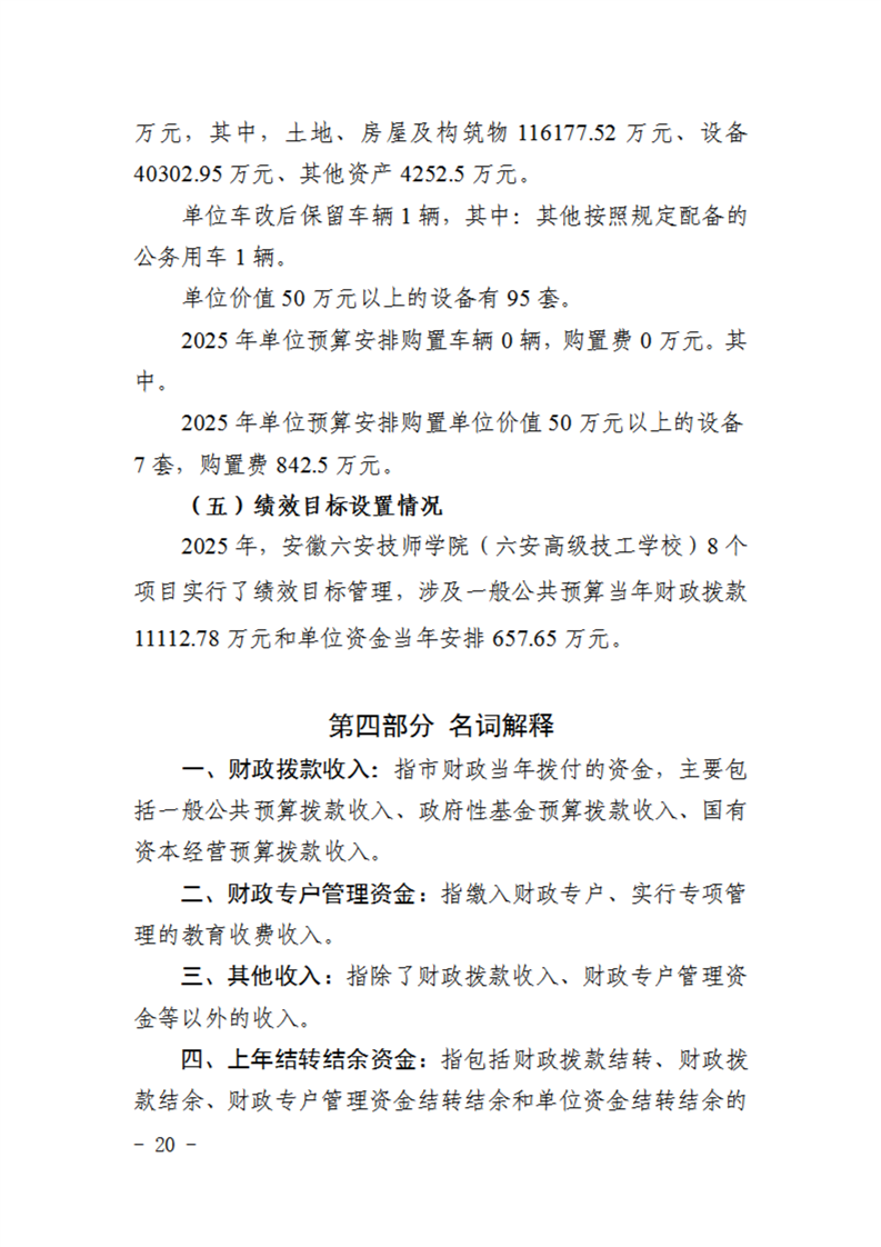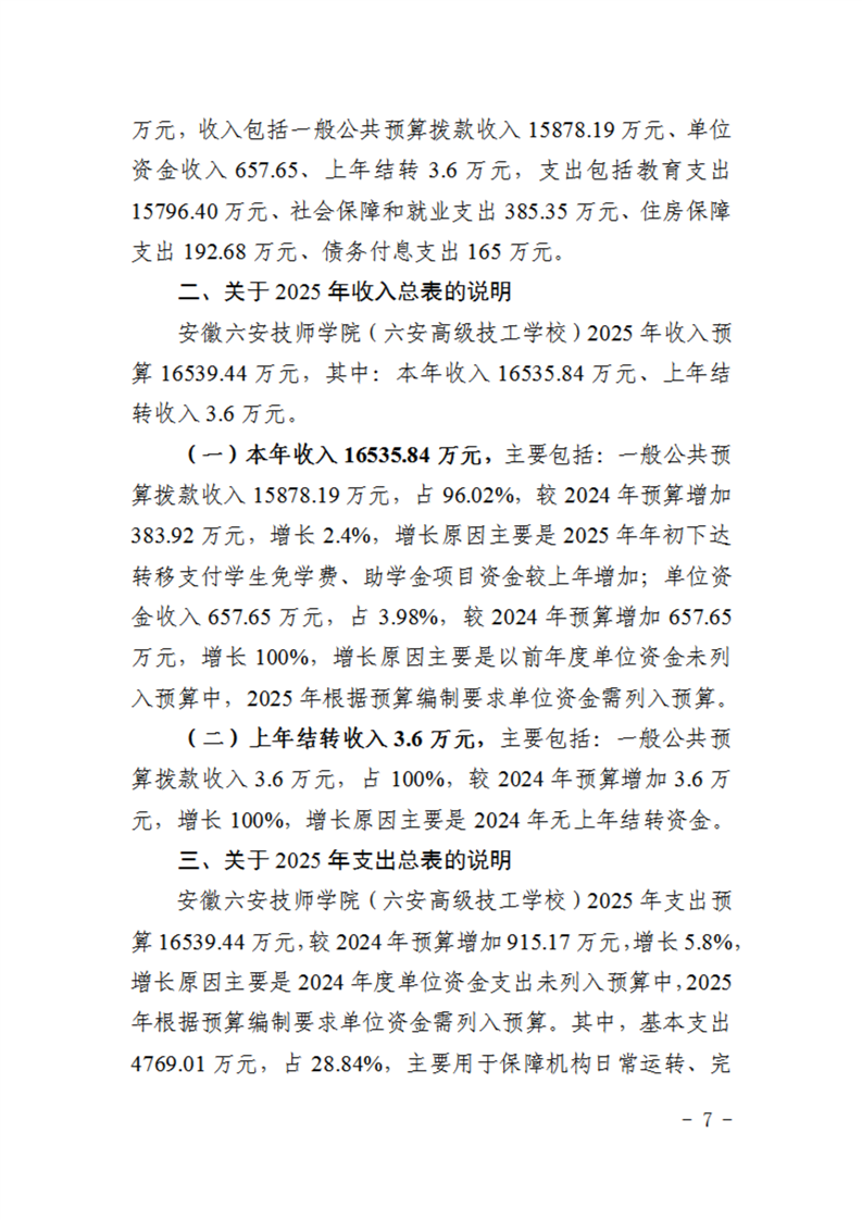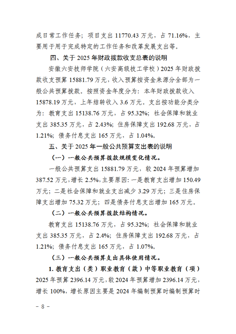 安徽六安技师学院(六安高级技工学校)2025年单位预算公开